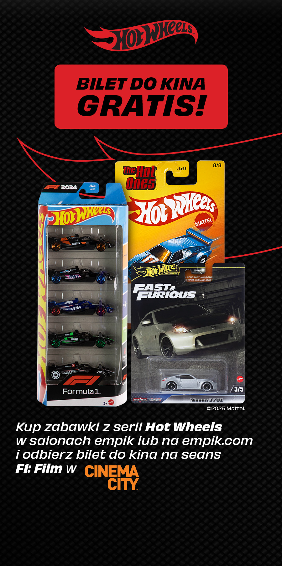 Akcja trwa od 01.08 do 31.08.2025 lub do wyczerpania puli biletów. Bilety ważne do 03.06.2026 i upoważniają do wejścia na dowolny seans 2D w sieci kin Cinema City. Pula biletów, szczegóły i regulamin dostępne na www.promocjahotwheels.pl. Organizator: Tolino Sp. z .o.o. z siedzibą w Katowicach.